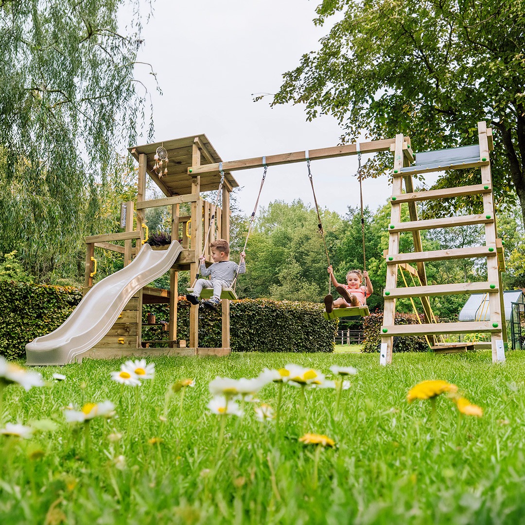 Nasze plac zabaw do ogrodu projektujemy i produkujemy sami, kładąc duży nacisk na trwałość i jakość drewna. Każdy zmałpi gaj wykonany jest z europejskiego drewna litego, impregnowanego w sposób odporny na warunki atmosferyczne. Dzięki szerokiej ofercie małpi gaj oraz różnym akcesoriom, które możesz dobrać, każda rodzina znajdzie coś dla siebie. Z zestawem fatmoose zabawa na dworze staje się większa niż kiedykolwiek!